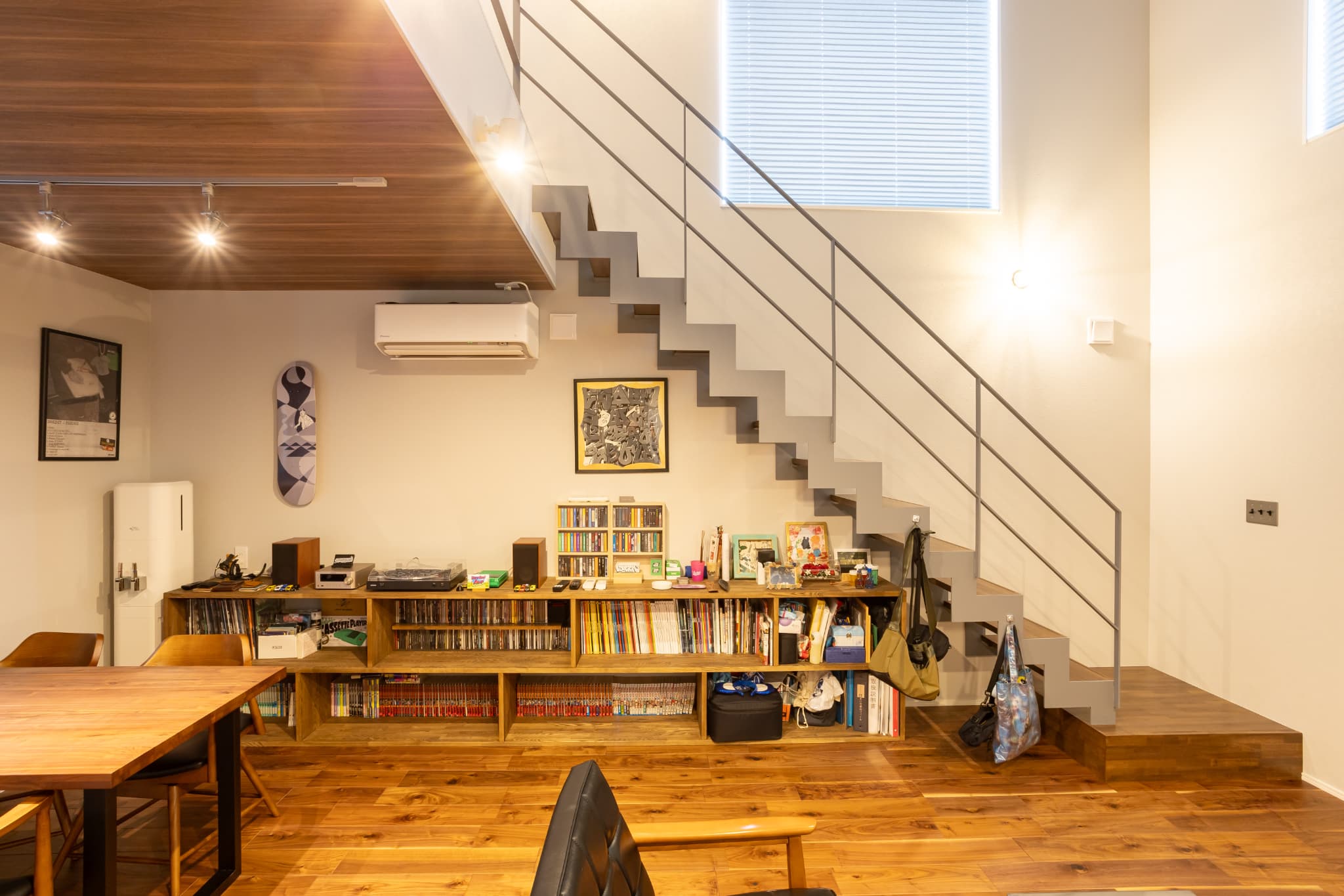 スケボーを飾るところやレコードを並べる棚も、自分たちに合わせて造作していただいたものです。