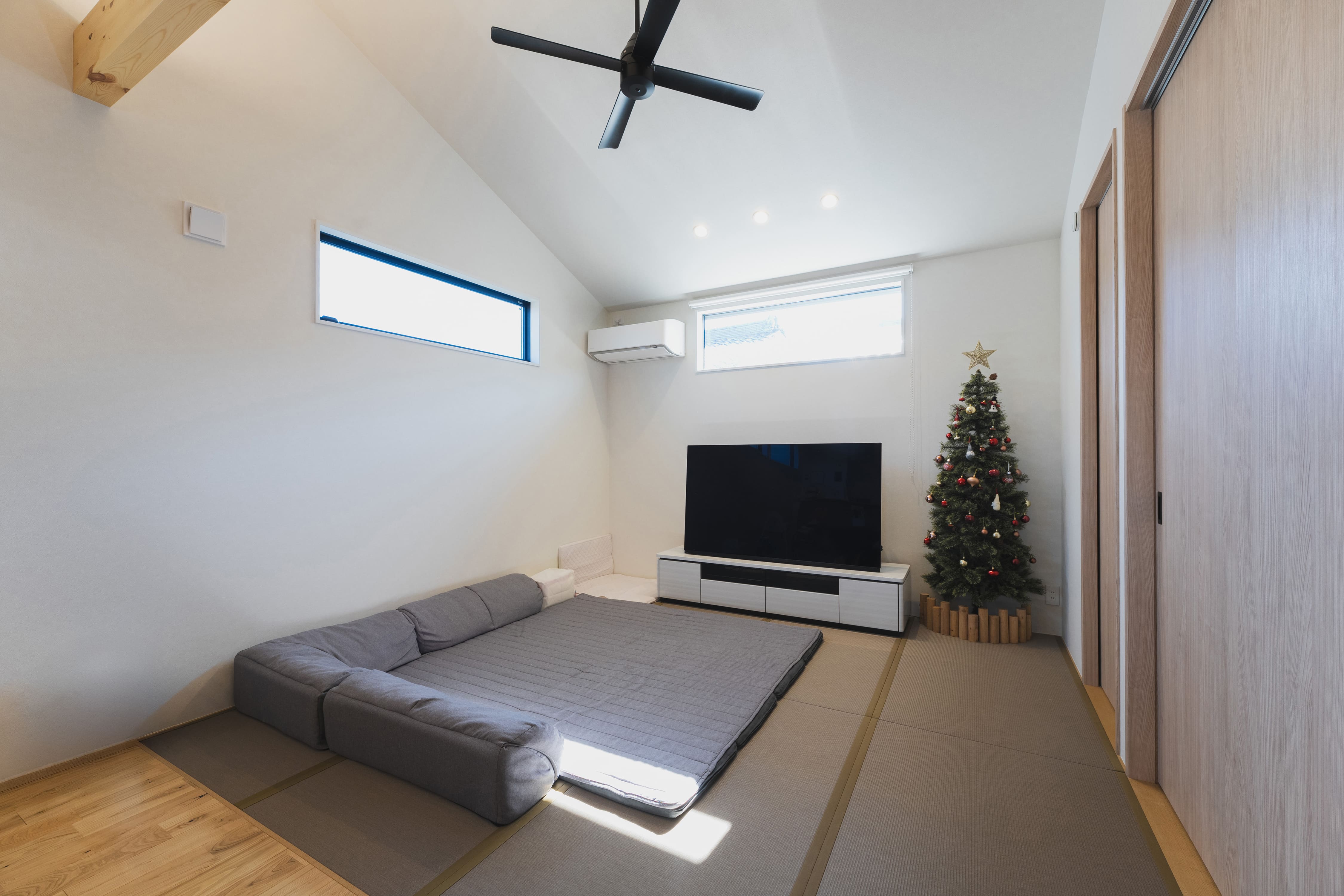 冬はエアコン1台で2階全体がしっかり暖まり、天井のファンもいい働きをしてくれています。
