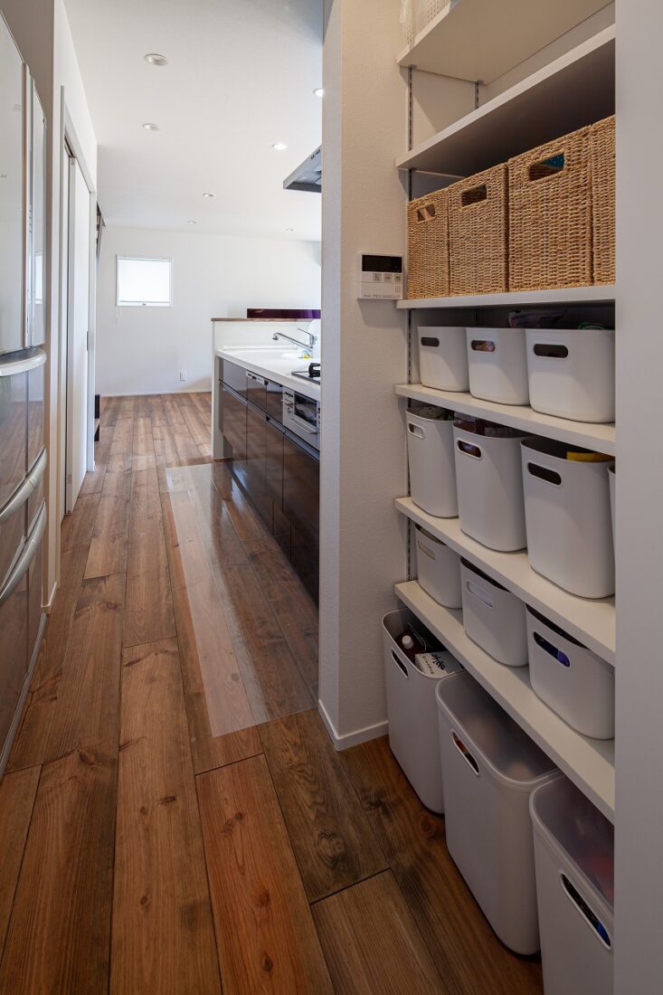例えば、キッチンのパントリーなら、シンクやコンロの並びや玄関からの通り道に作ると出し入れが苦になりません。