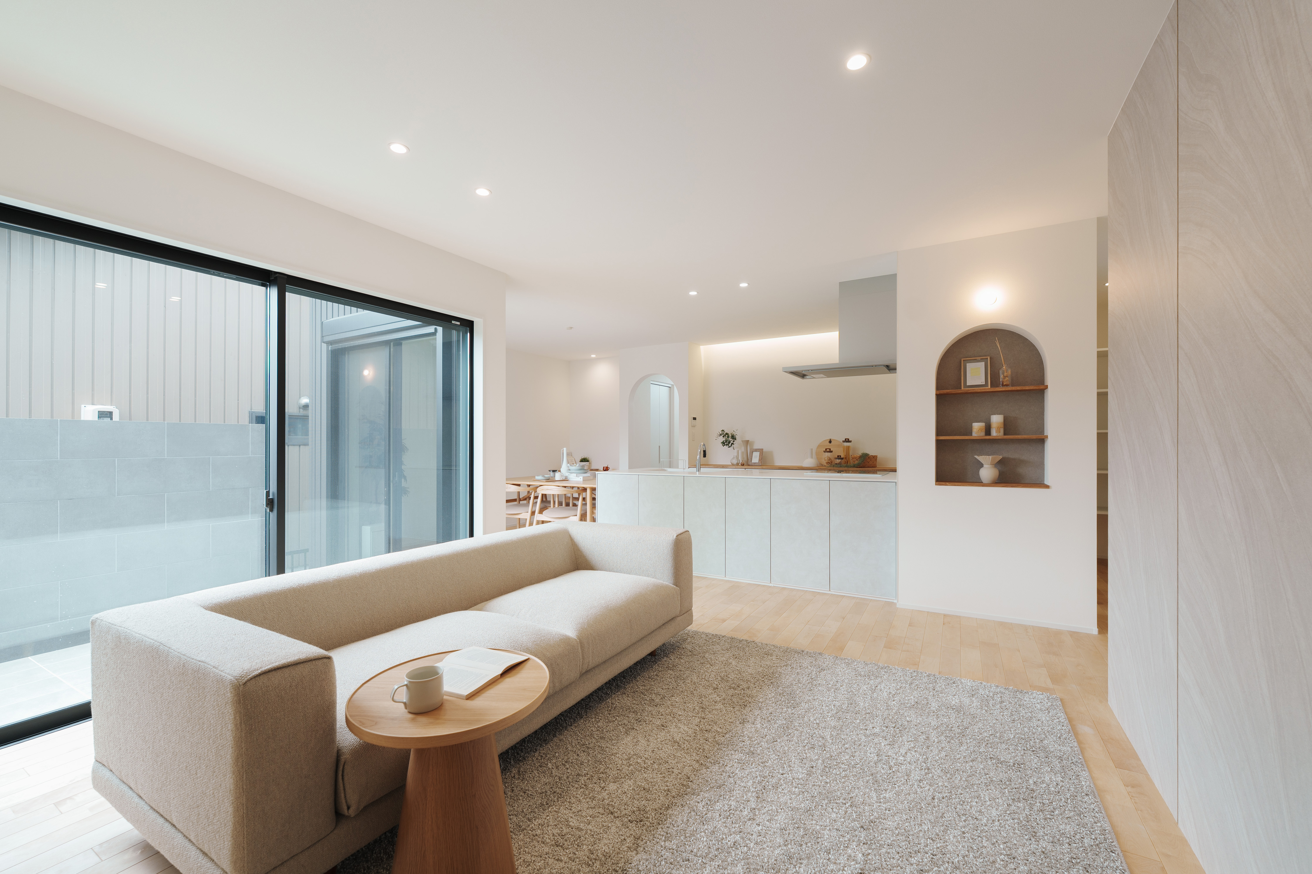 建築のプロであるご主人様が選んだのは、美しいホワイトセラミック天板のキッチン。