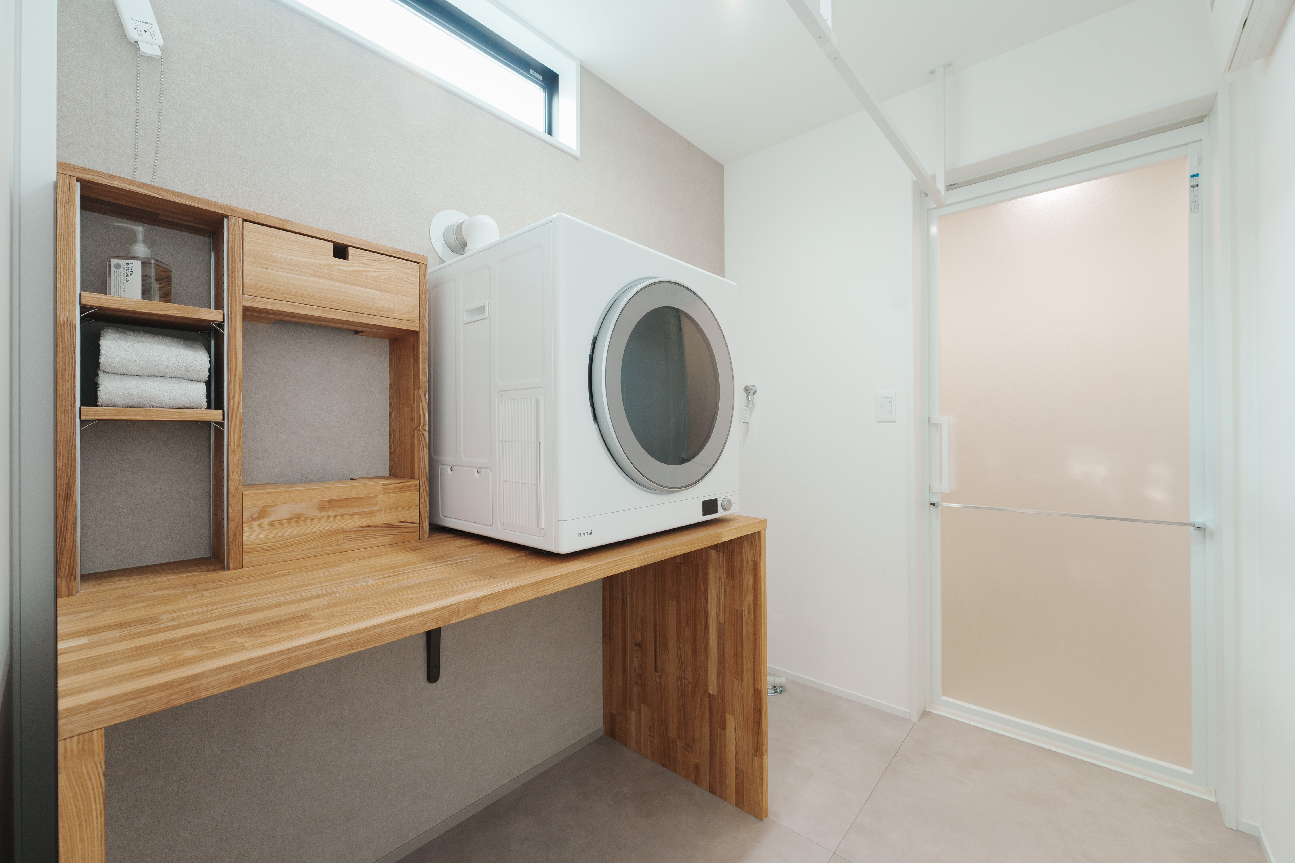 洗面台をオープンにした分、脱衣室内にドライヤー専用の場所を確保。